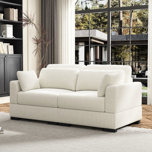 Upholstered Sofa Made of Corduroy Fabric with Removable Cushions