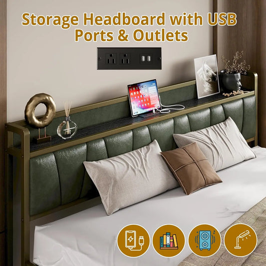 Twin XL/Full/King/California King Bed Frame with Charging Station.