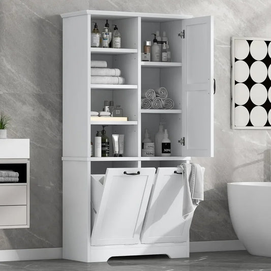Bathroom Storage Cabinet with 2 Tilt Out Laundry Hamper