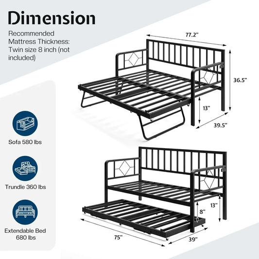 Daybed Frame with Steel Slats Support