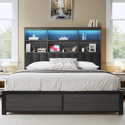 Queen Bed Frame with Storage Headboard