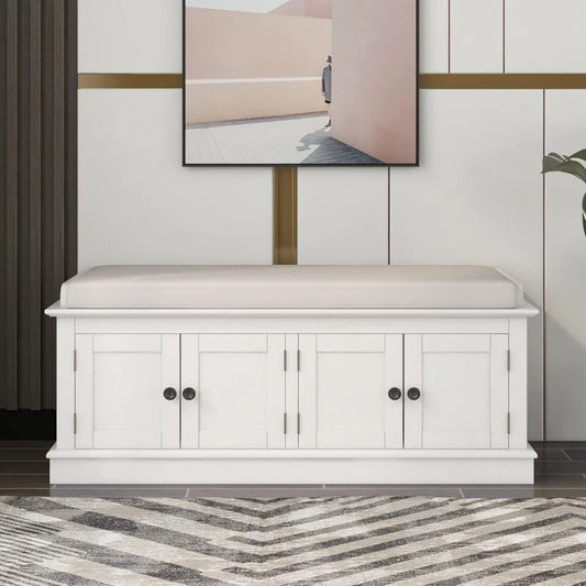 Rustic Storage Bench with 4 Doors and Adjustable Shelves