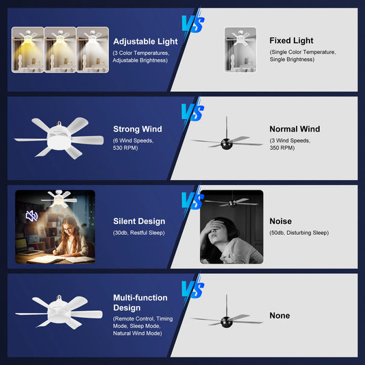 Socket Fan Light with Remote, 3 Colors 3000K-6500K Dimmable Socket Fan