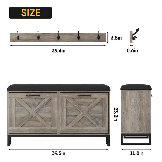 Wooden Shoe Cabinet with Padded Seat Cushion for Entryway