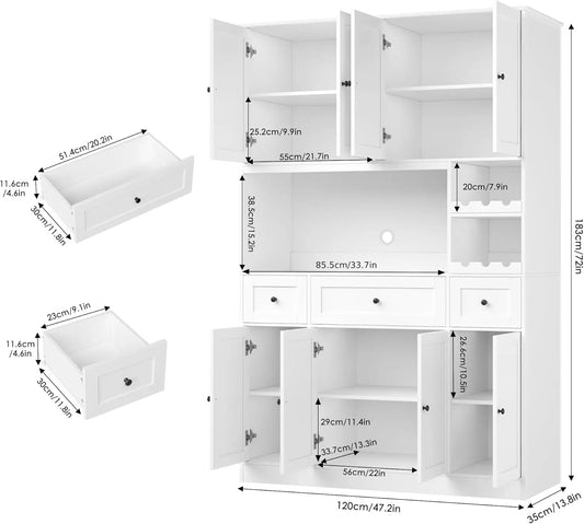 72" Tall Kitchen Pantry Storage Cabinet with Wine Rack