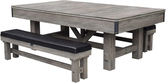 7ft Pool Table Combo Set with Benches Rustic Gray with Blue Felt multi-functional table crafted from sturdy