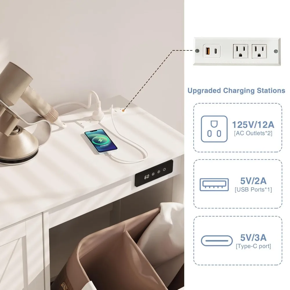 - Convenient Charging Station: The tilt-out trash cabinet is equipped with a charging station that includes 2 standard outlets, 1 USB port, and 1 Type-C port. This ensures that you have enough sockets to charge multiple devices simultaneously, such as phones, coffee machines, and toasters, making it a convenient addition to your kitchen or living area.