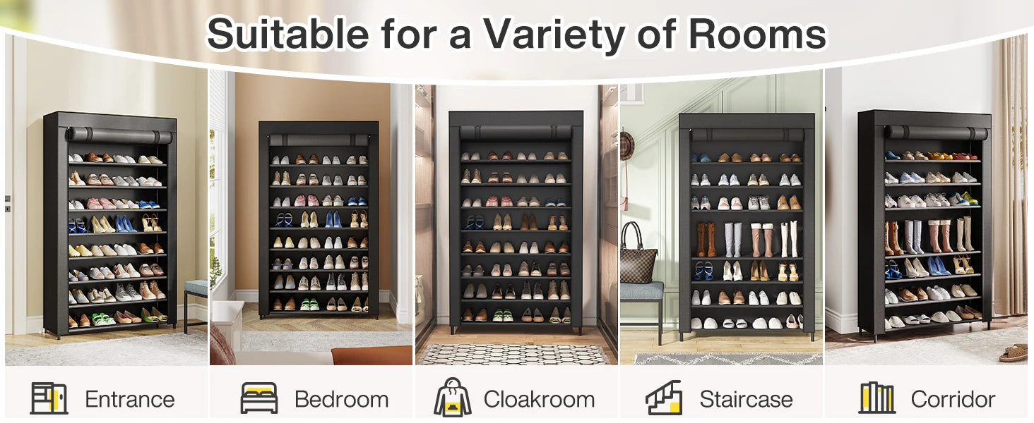 - Wide Use: No matter where you place this shoe shelves with Dustproof Cover, entrance, cloakroom, hallway, or garage, it will turn a cluttered scene into a neat look.