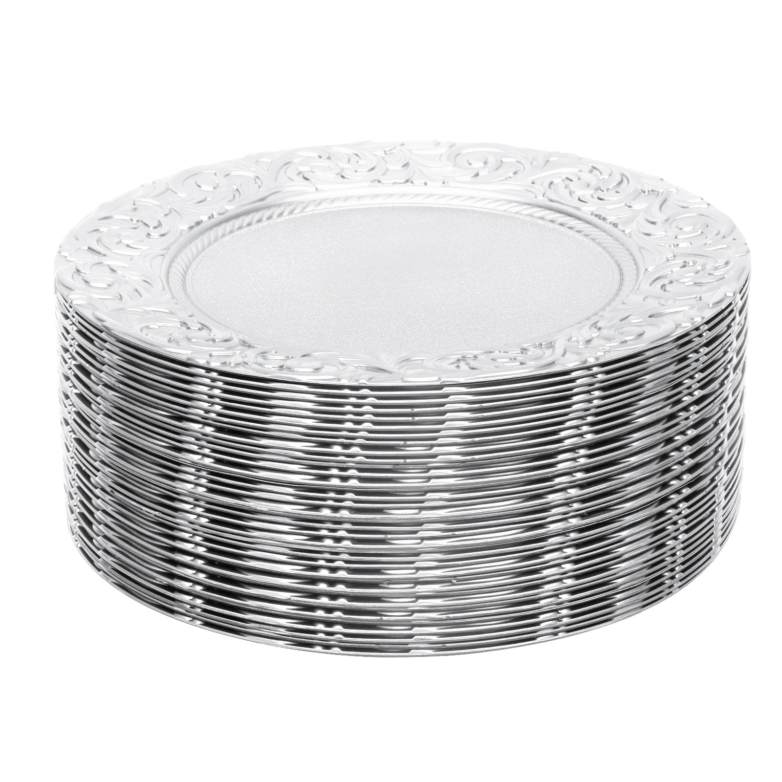 Charming Appearance: The simple round shape, elegant silver color, and beautifully embossed rim make these products premium decorations for your table, especially when matching with other dinnerware sets.