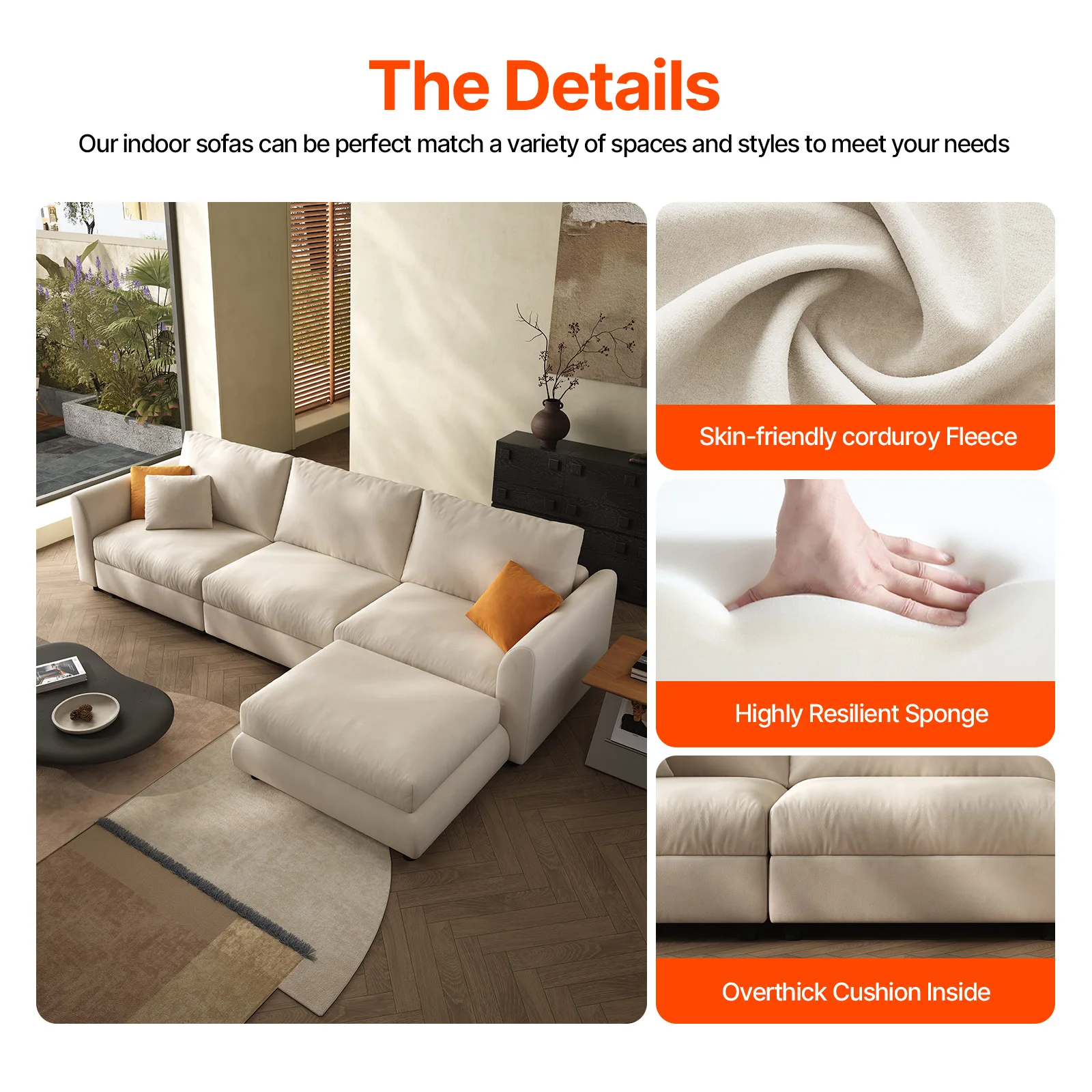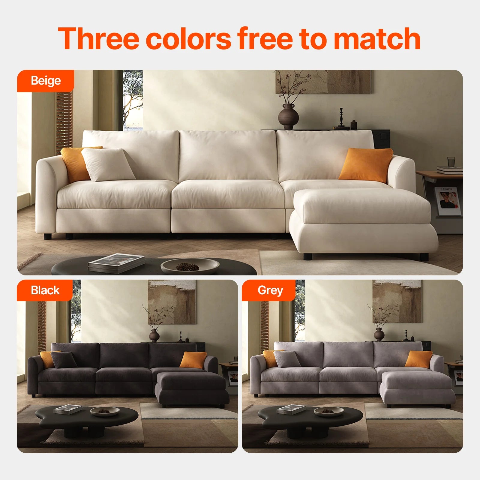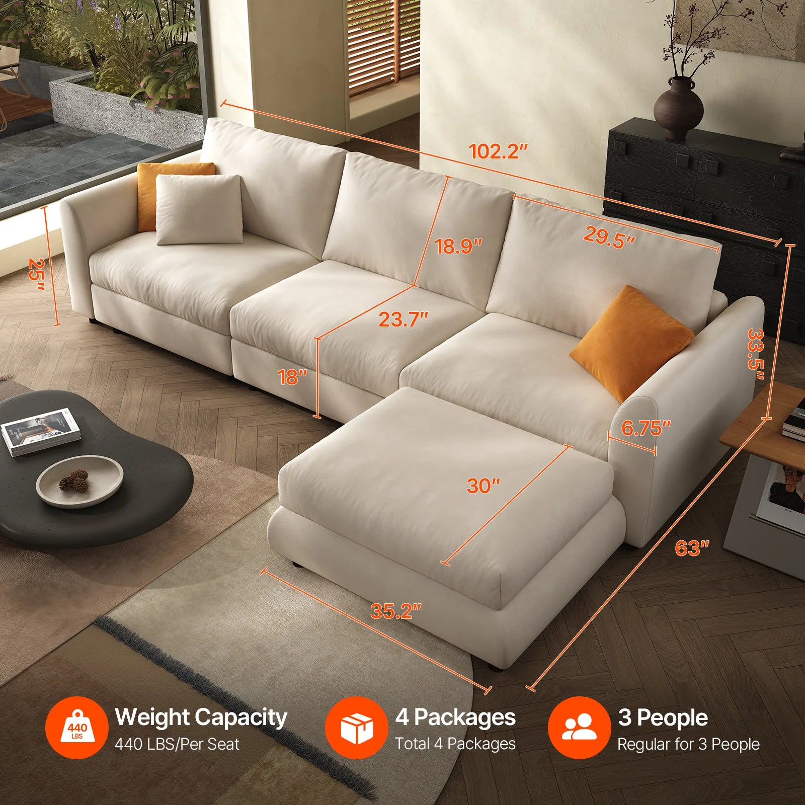 108.2'' Comfy Cloud Couch Modern Sectional Sofa with Ottoman