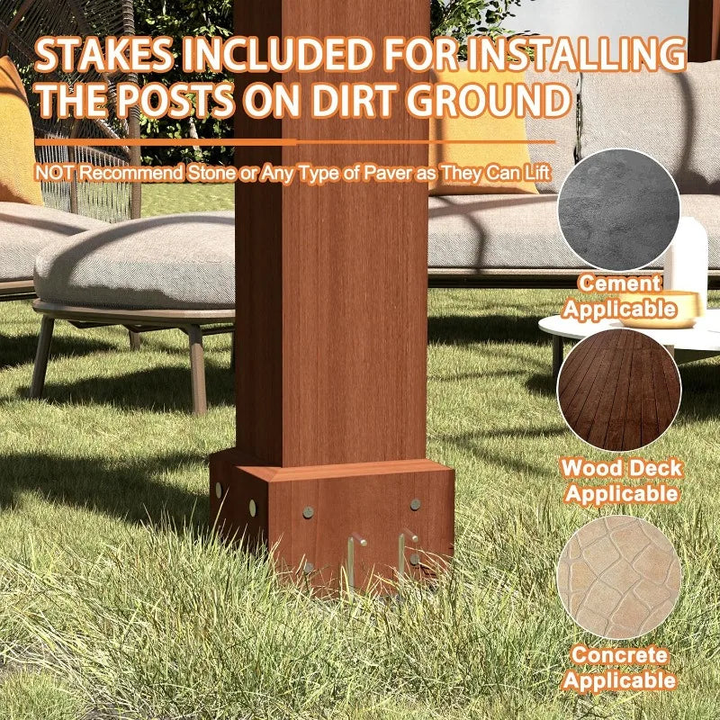 Stakes Included: You can use stakes (included) to mount the pergola to any grass, wood deck or cement outside. If you want to strengthen the stability of the wood pergola, you can use expansion screws (not included)