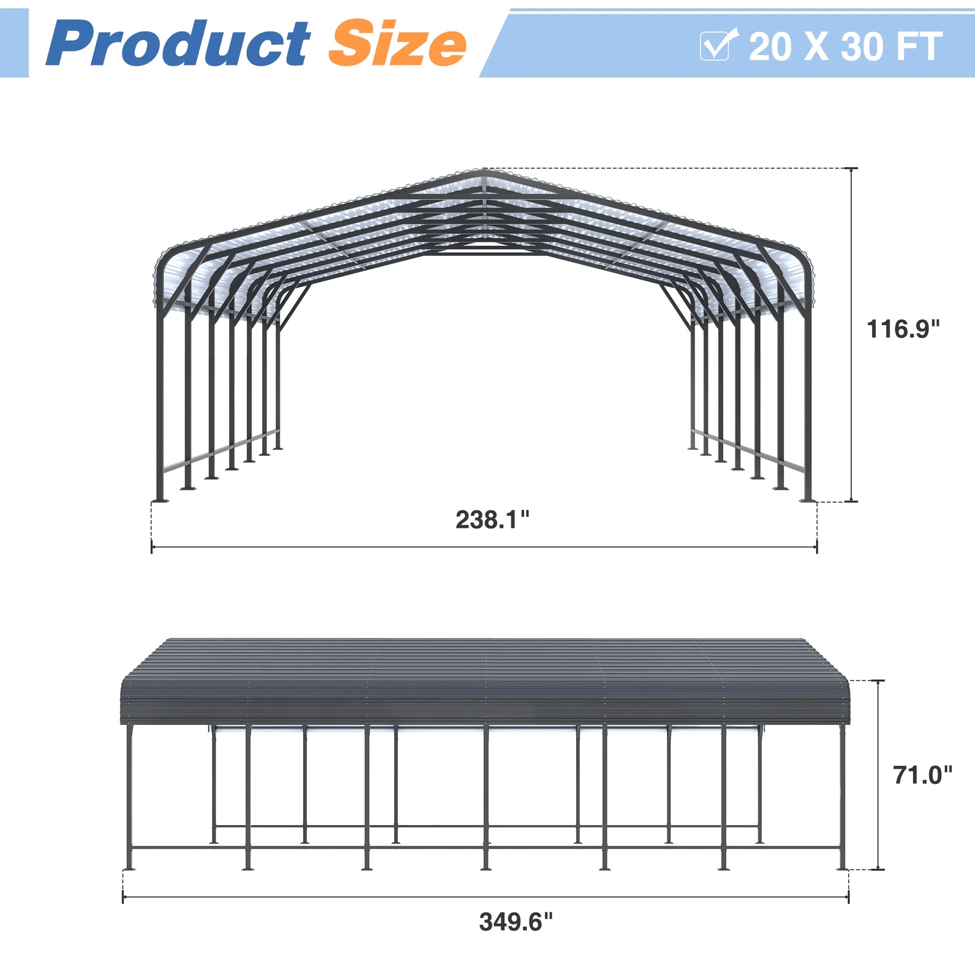 Multiple Sizes Available – Choose from different carport dimensions (such as 10x15 FT, 20x12 FT 20x20 FT, 20x30 FT, 20x40 FT) to fit your storage or vehicle protection needs.