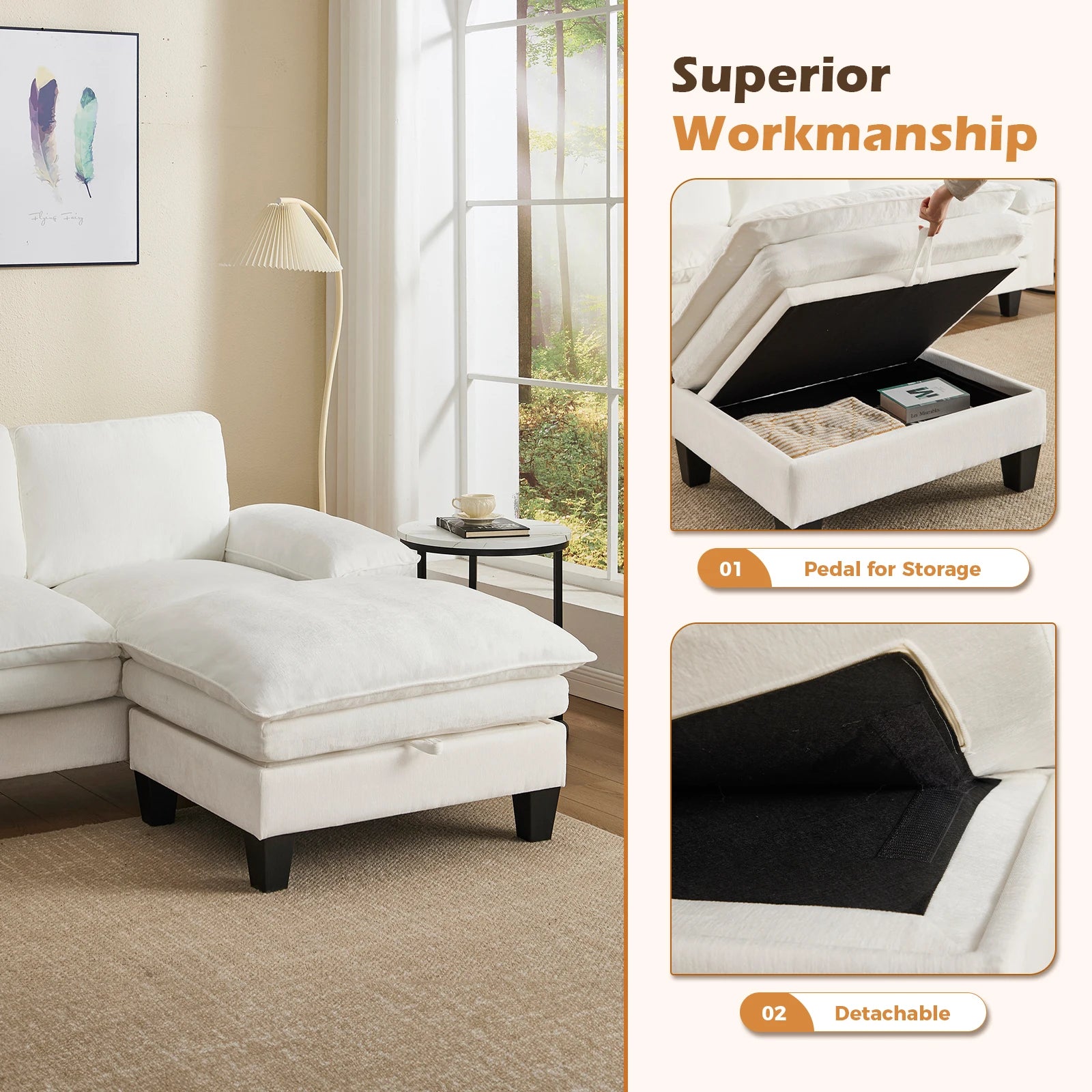 STORAGE SOLUTION: Keep your living area clutter-free with the included storage ottoman, perfect for hiding away blankets, magazines, and other essentials.