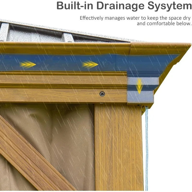 ❤️Realistic Wood Grain Finish- The 14x20FT hardtop gazebo features a stunning wood grain transfer print, giving it an authentic and natural look.