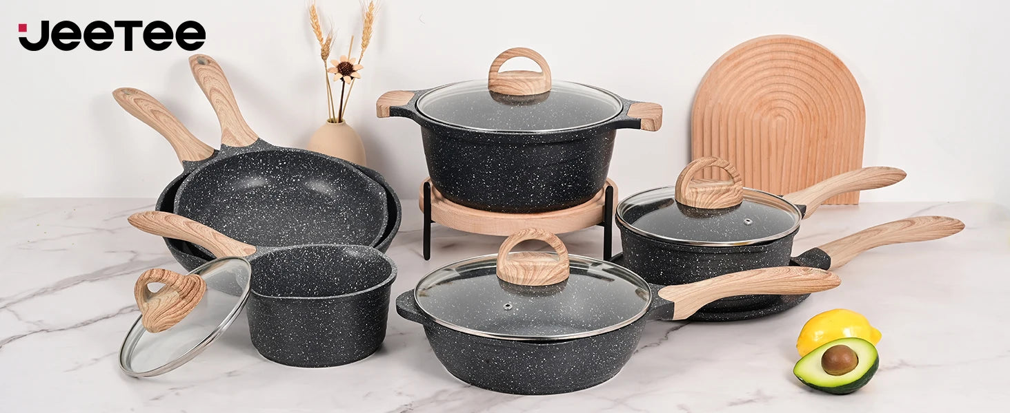 3. Ultra Nonstick Coating: The nonstick granite cookware set is not only robust but also 100% PFOA, lead, and cadmium free.