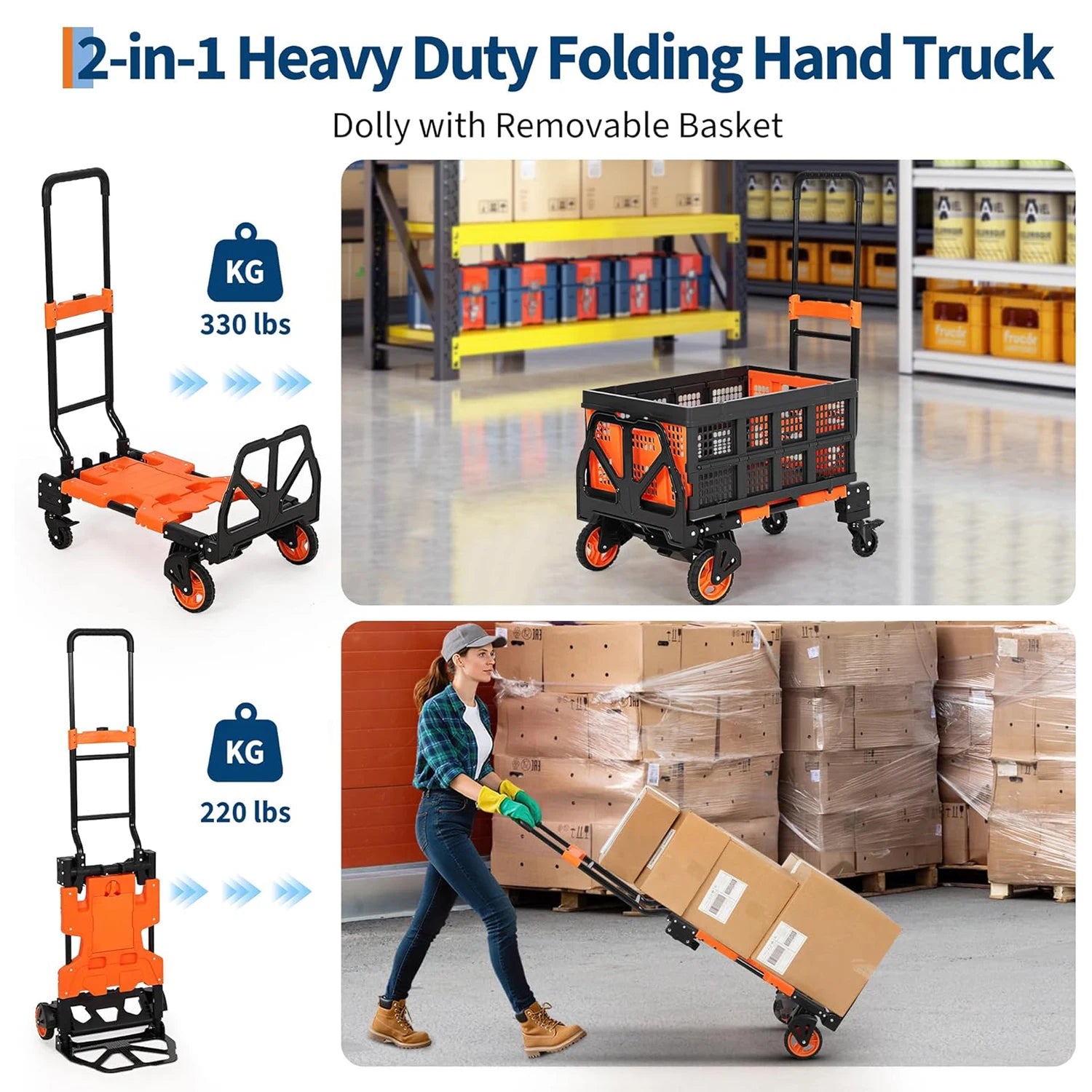 2-in-1 Folding Hand Truck with Foldable Basket
