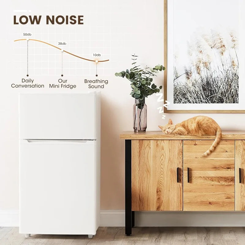 - [Low Noise Operation] Designed with a quiet motor, this fridge operates smoothly without disturbing your environment, allowing for peaceful use in any room.