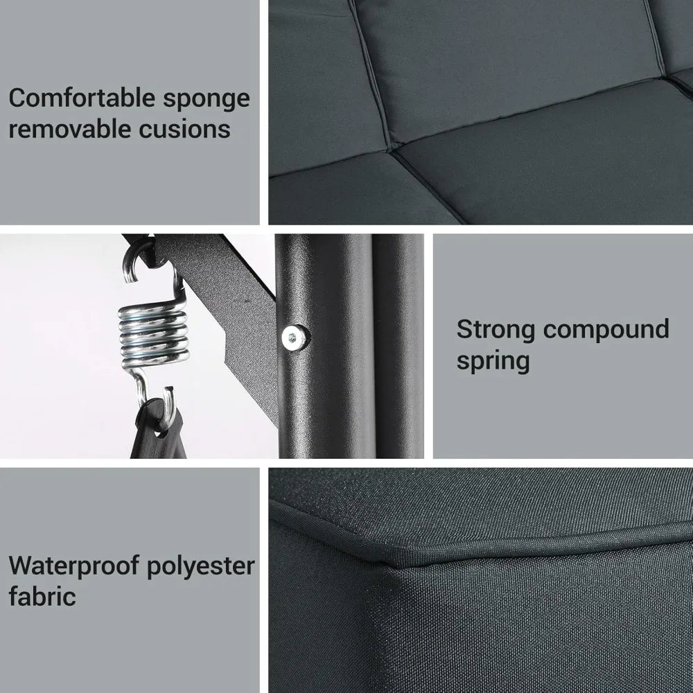 - 【750 LBS Weight Capacity For Safety】Patio Swing Bench has a strong and durable steel frame, weight capacity of up to 750 pounds. It has sturdy steel fittings, hooks, and seat tubes for stable support. The patio swing also has heavy-duty compound spring for smooth and gentle motion.