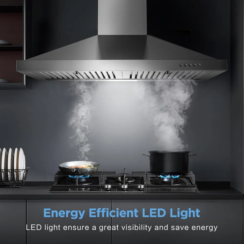 ULTRA QUIET OPERATION: 450 CFM squirrel cage motor eliminates cooking odors from the kitchen air, and give you a clean kitchen. Customize your kitchen range hood with the 3-speed setting to play with the suction and noise level, even at the high speed, the noise does not exceed 55dB