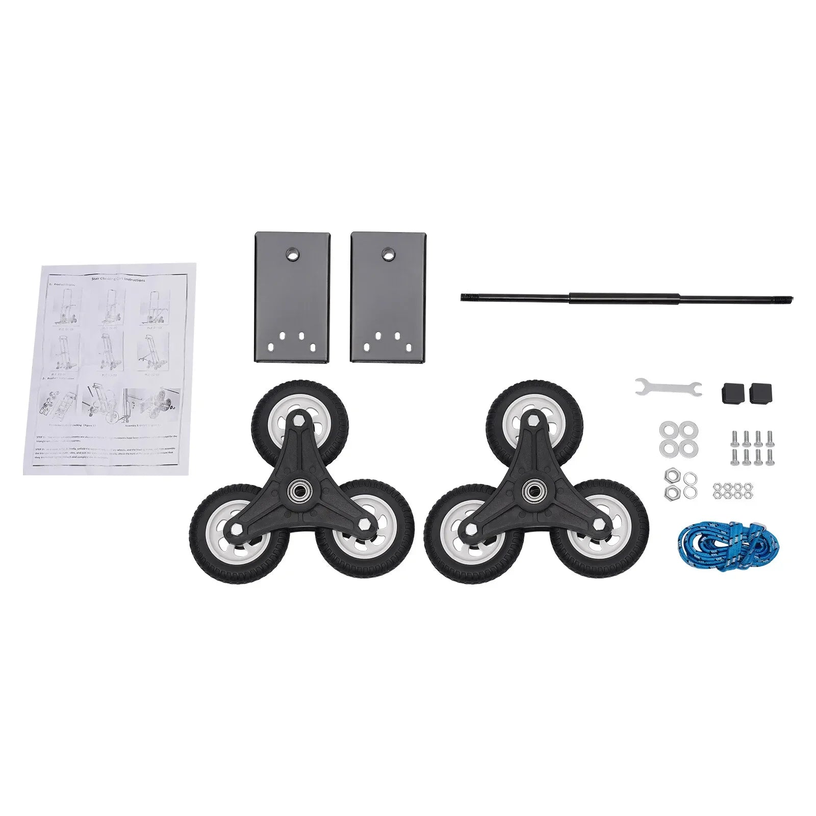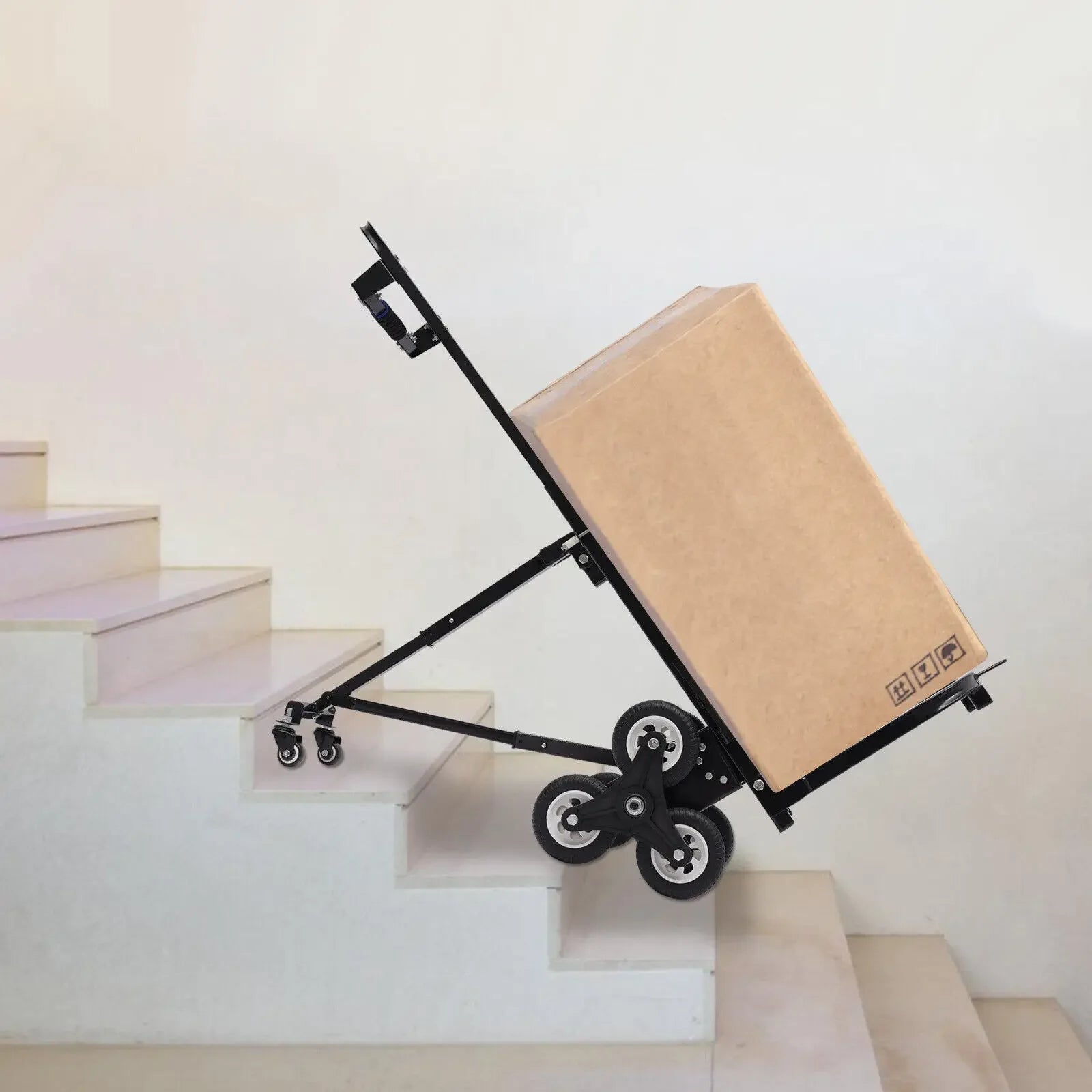 Good Assitant: Equipped with two front wheels and six rear wheels, it can facilitate flexible movement to help you carry goods upstairs. And the binding rope can effectively secure the goods to prevent them from falling.