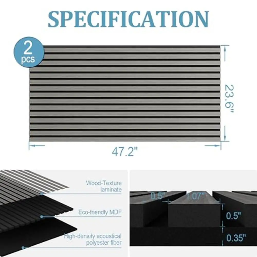 Product Specifications: 2 pieces. 47. 2 "X 23. 6". Elvone wall panels are made of medium density fibreboard, hard and waterproof, so the veneer is not only stable but also durable. The backing blanket is made of recyclable material.