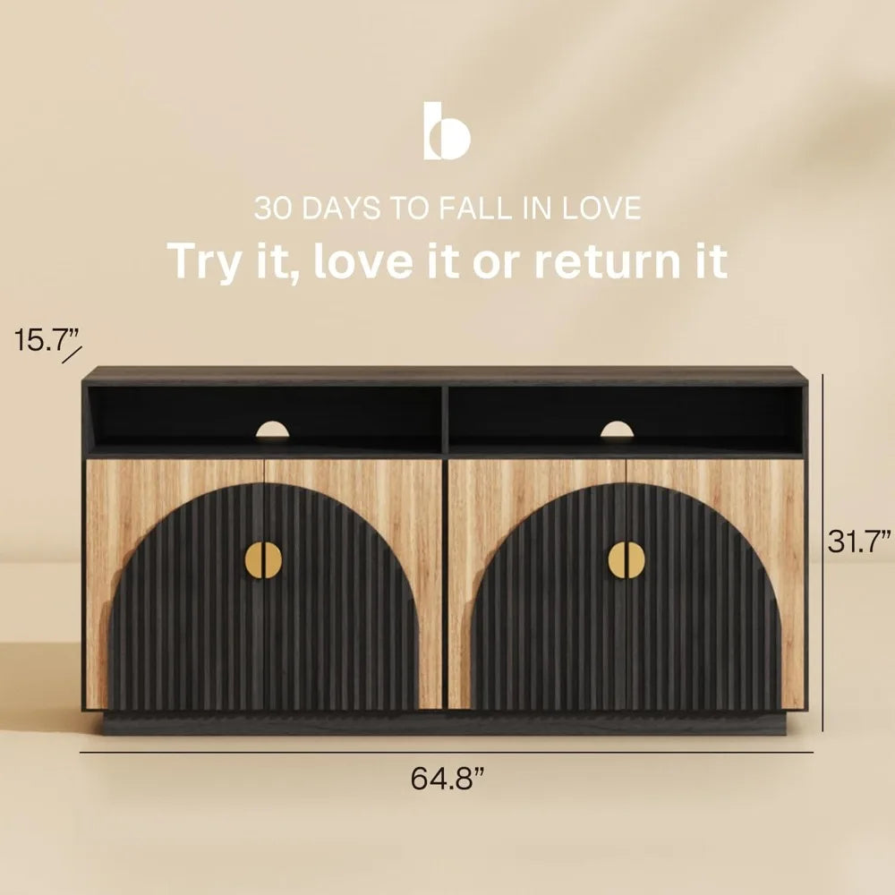 65-Inch Fluted TV Stand, with Storage Cabinets