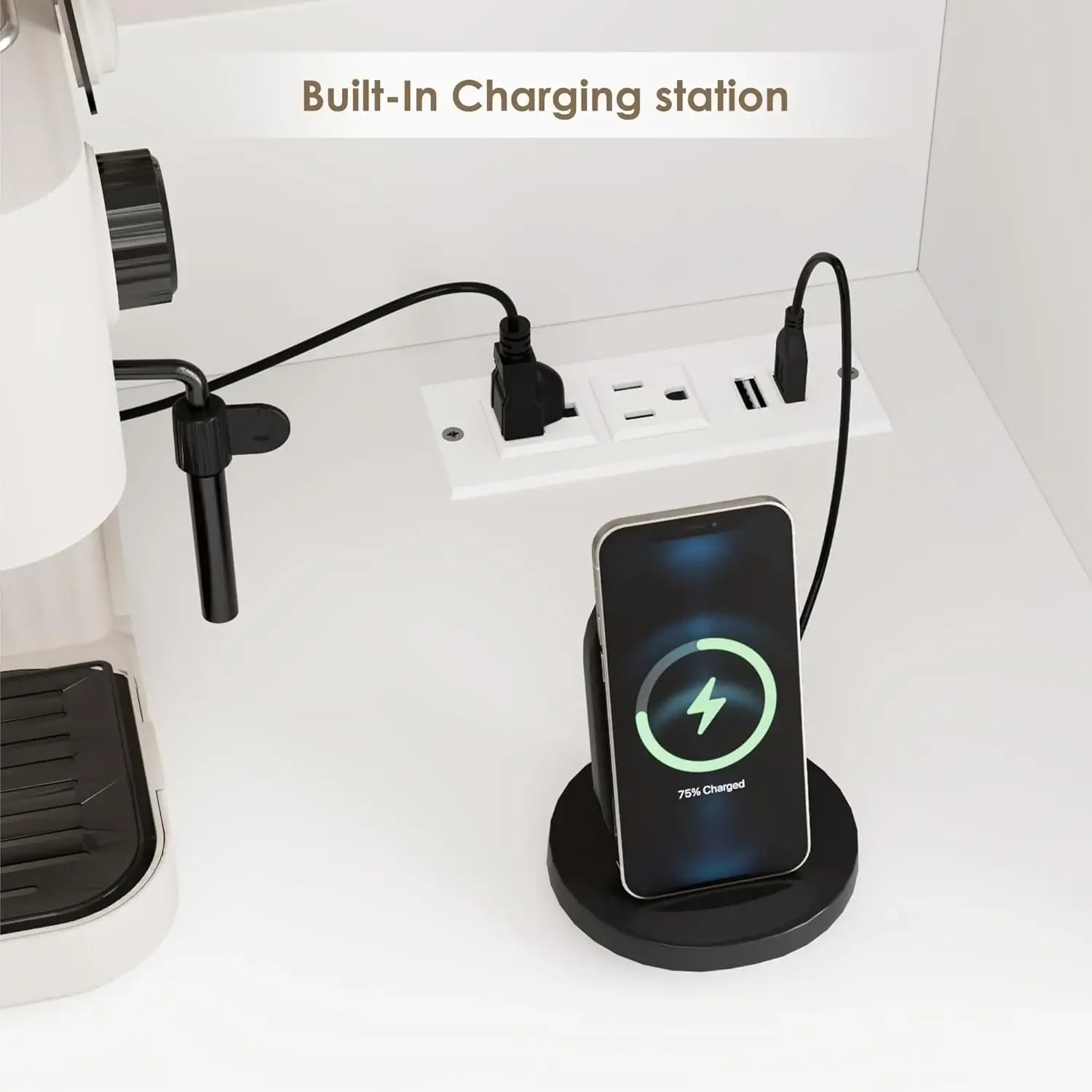 - SPACIOUS COUNTERTOP WITH CHARGING STATION: This kitchen pantry cabinet boasts a 47.2"W x 20.3"H countertop, providing ample space for all your essentials. Designed with convenience in mind, it includes 2 AC power outlets and 2 USB ports, making it easy to power and charge appliances such as coffee makers, ice makers, microwaves, toasters, and more. Whether you're preparing your morning brew or hosting a gathering, this cabinet meets all your needs. Sit back, sip, and savor the moment