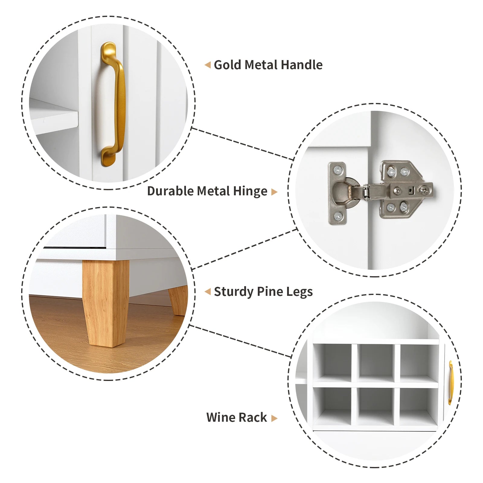 【MODERN MINIMALIST STYLE】The classic white combination and elegant appearance of this kitchen storage cabinet make it an ideal decorative choice for furniture lovers, easily integrating into your kitchen, office, lounge, pantry or dining room décor.