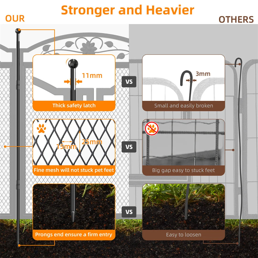 【Unique Dog Fence】Dog fence made from metal iron with smooth edges, stronger and heavier, resistant to be damaged and bitten, creates a secure and cozy spot for small dogs, bunnies, chicks, ducks and kittens, 15mm wire gap, tight enough to prevent them from escaping, will not stuck pet feet
