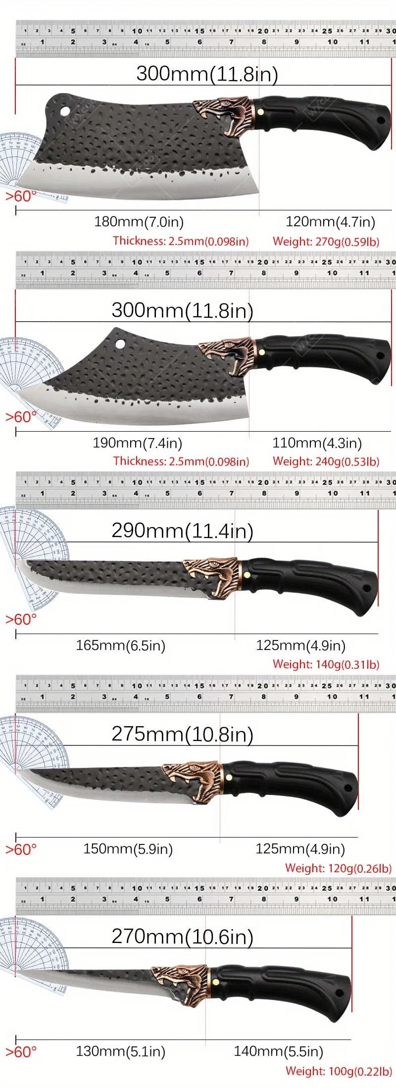 Sharp Chef Knife: Our chef knives are constructed from premium japanese steel. It performs well in toughness and durability. Like traditional Japanese kitchen knives, blades have a precision cutting quality. Each blade is handcrafted to create a precise, long-lasting cut. The sharp blade makes the cooking safe and effortless. (Warm Tip: Always hand washes those forged in fire knives!)