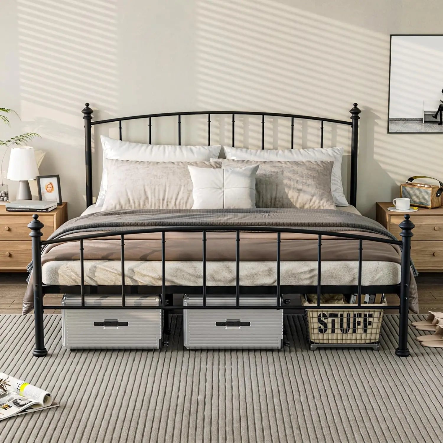 - Sturdy Iron Construction: Crafted from durable iron, this bed frame provides exceptional strength and long-lasting durability, supporting a variety of mattress types and weights.