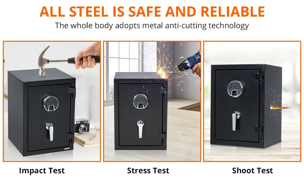 【Fireproof Certification】: Fireproof safe is laboratory certified to withstand high temperatures of 1700°F/926°C for 39 minutes. This means your valuables will get precious rescue time in a fire, which greatly protects your property.