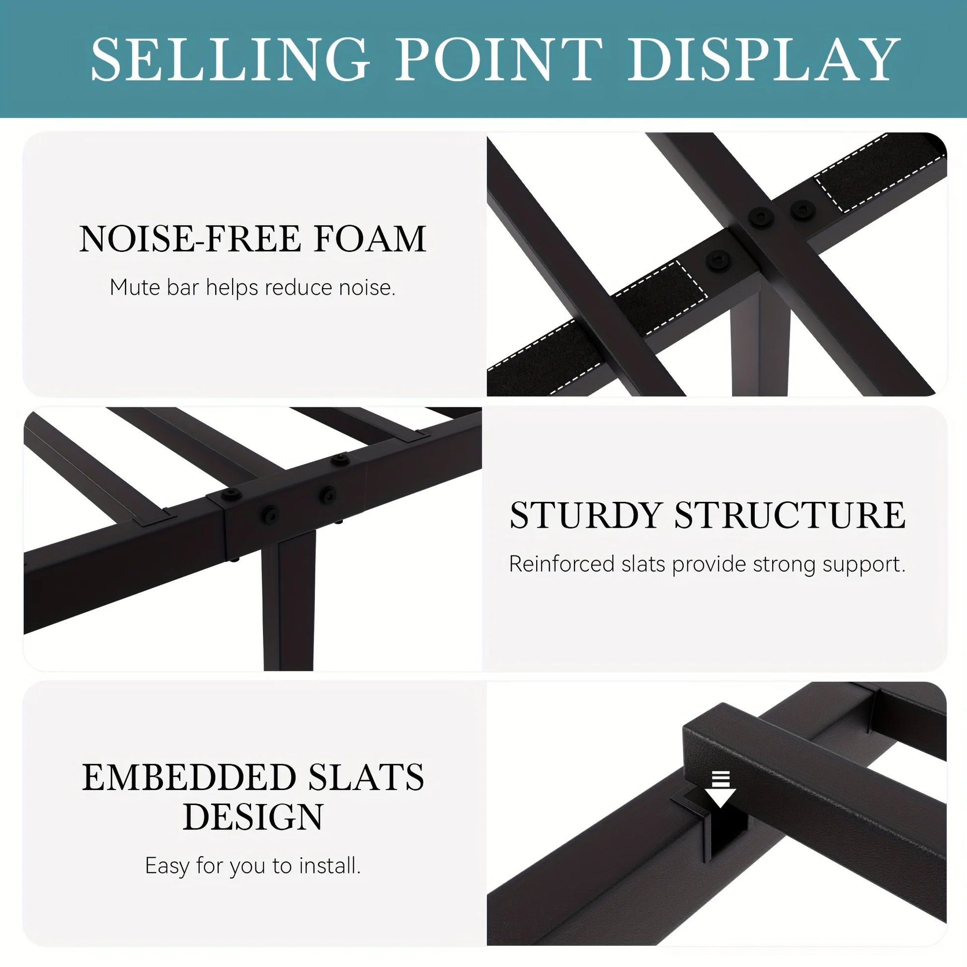 PEACEFUL NIGHTS: Each metal bar features a noiseless design with silent pads , ensuring a stable and silent structure for the bed, creating a peaceful sleeping environment