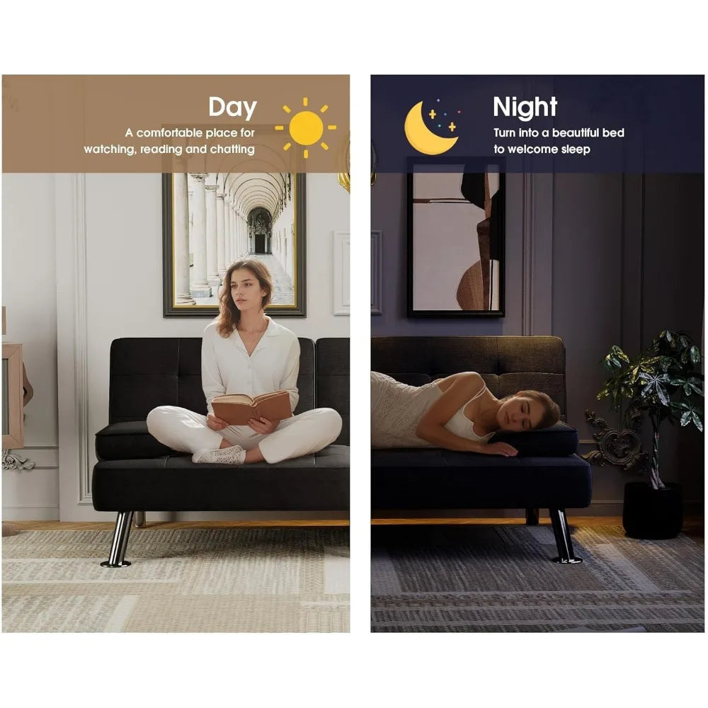 Modern Convertible Futon Sofa Bed with Linen Fabric