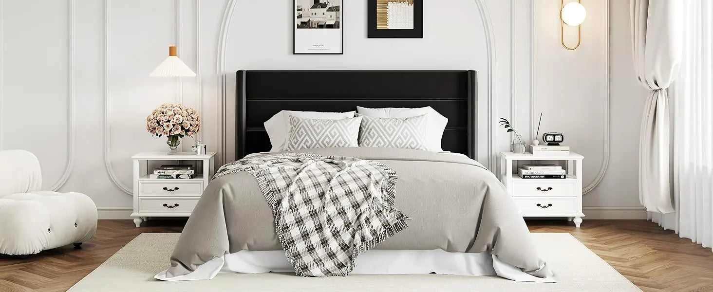 - Elegant Headboard: High wingback headboard adds elegant aesthetics to your bedroom. Horizontal channel pattern illuminates stylish and minimalist trends