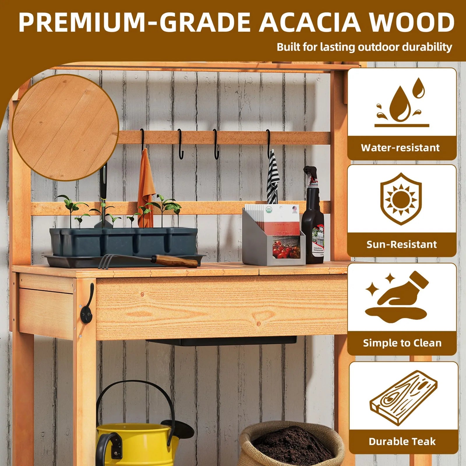 Solid Woodwork Potting Bench Outdoor Garden Workstation Table