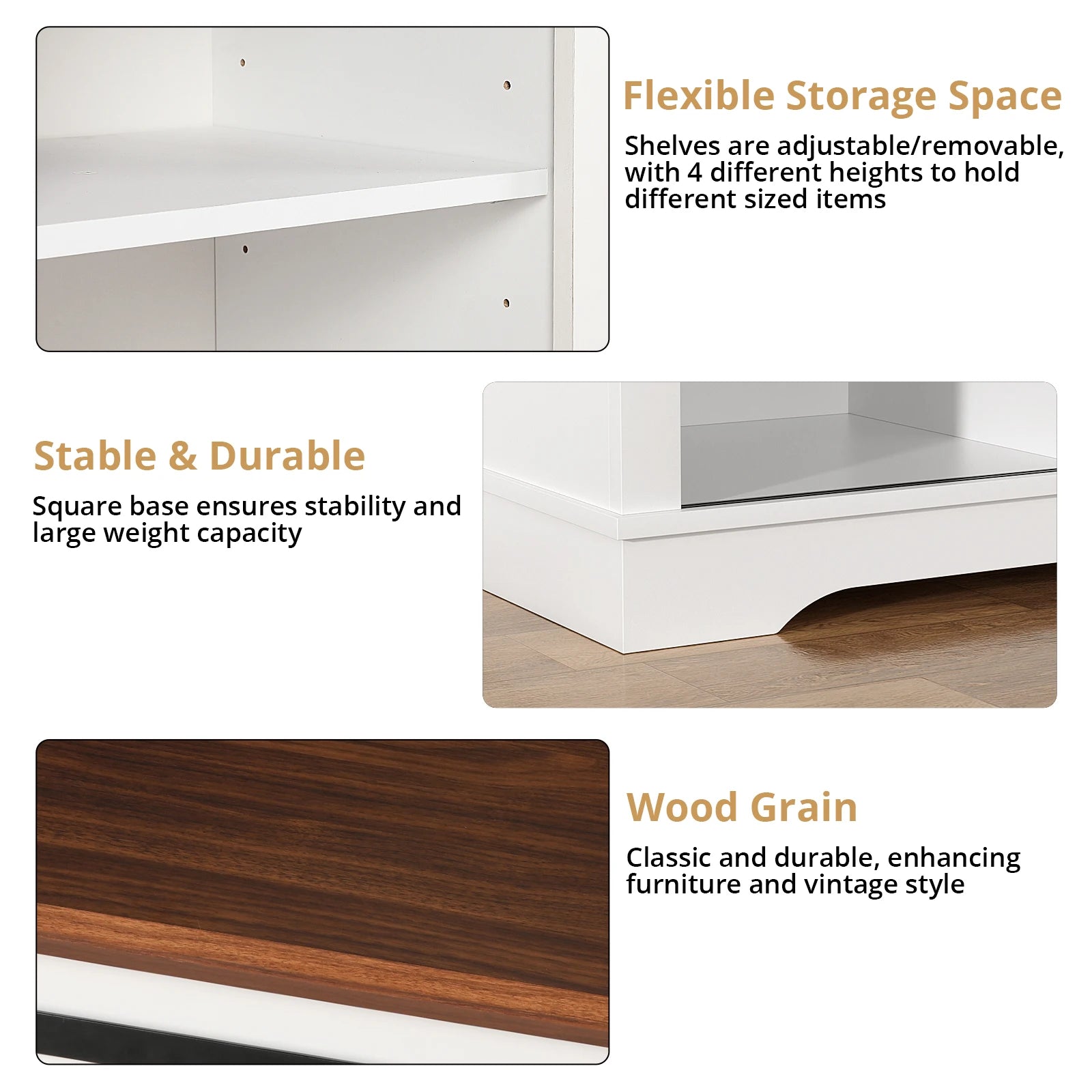 【Sturdy &Quality Assurance】This TV stand is made of high quality particle board and MDF, which is sturdy, durable and easy to clean.Square base ensures stability and large weight capacity. You can rest assured that you can enjoy your family time by placing your TV on this TV stand.