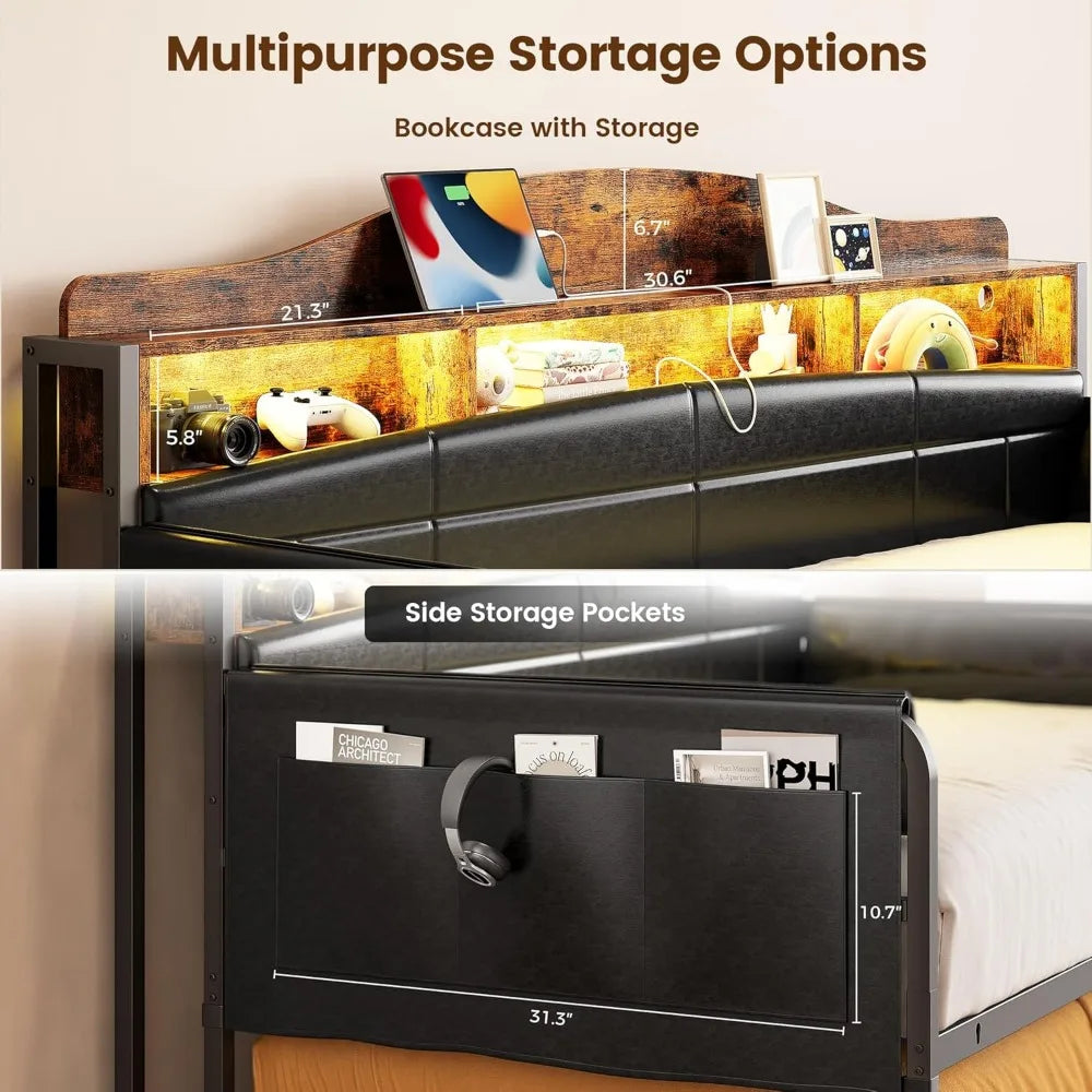 - Adjustable RGB LED and Built-in Charger: Double sofa bed has 60,000+ colors & 29 modes, controllable via remote/app (timed & mic - enabled). The bed frame's power hub with 2 AC, 1 USB, and 1 Type - C for easy charging