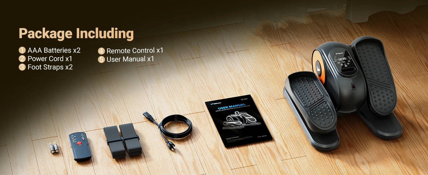 Silent Function: Equipped with the latest E4 silent motor, this ellipse leg exerciser provides a quiet, smooth experience suitable for both low and high-speed use. Its eco-friendly rubber base prevents movement and keeps the machine stable during workouts, even when multitasking, like working or watching TV.